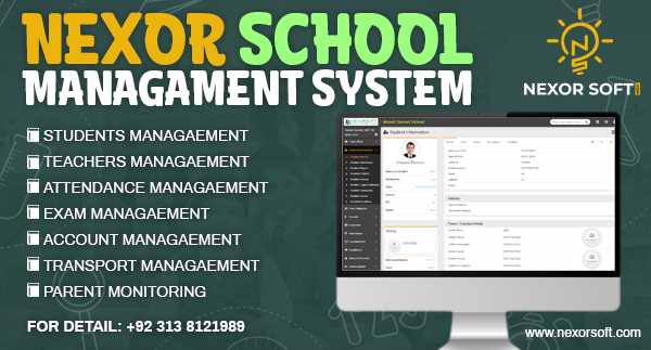 Nexor School is Modern and Complete School Automation Software that suites to almost every school or educational institution from student admission to student leaving, from fees collection to exam results. It includes 40+ modules with 8 inbuilt users (Super Admin, Admin, Accountant, Teacher, Receptionist, Librarian, Parent and Student) panel.